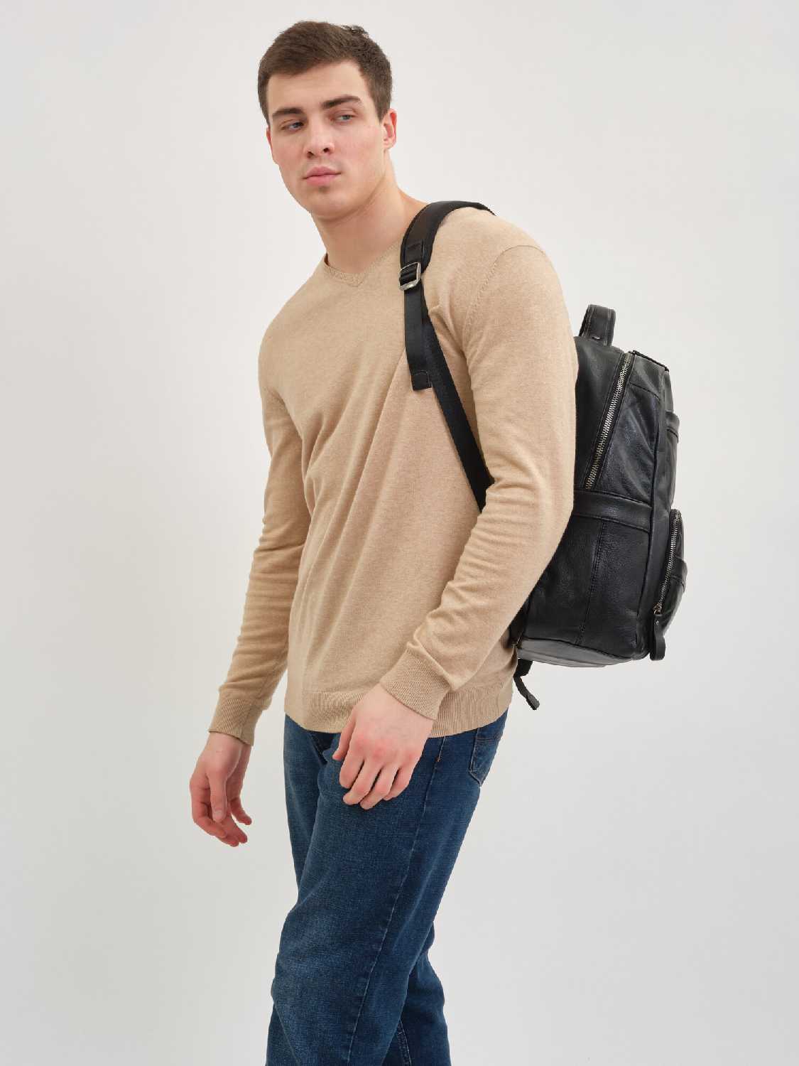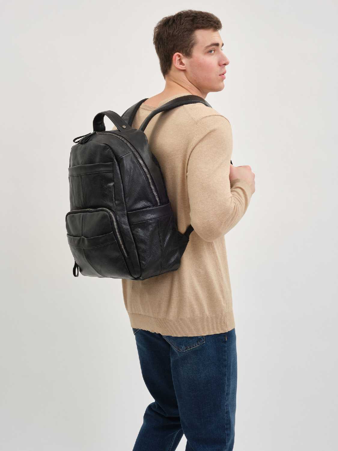 - + настоящая кожа. иногда заедает замок. но сам рюкзак отличный.