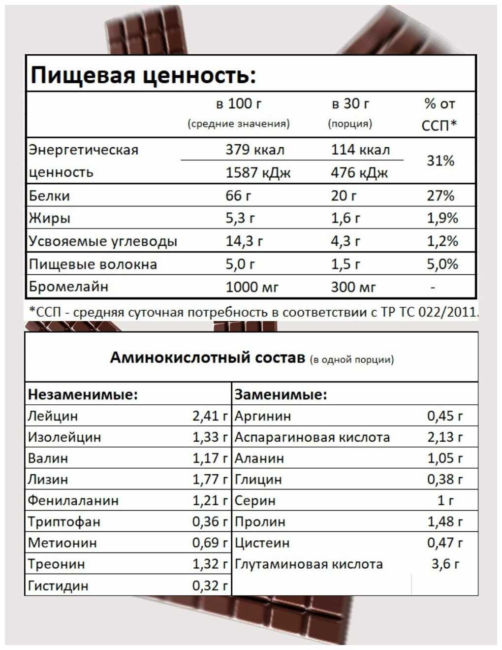 | Содержание белков в 100 г : | 66 |