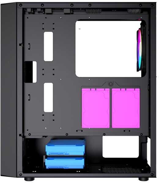 - + Внешне очень красивый и простой корпус, классная подсветка на 3пин коннекторах и вполне здравые куллеры в базе, хорошо продувается, хорошее коленое стекло, перфорация для вентиляторов на кожухе блока питания