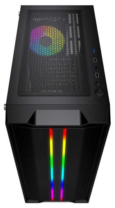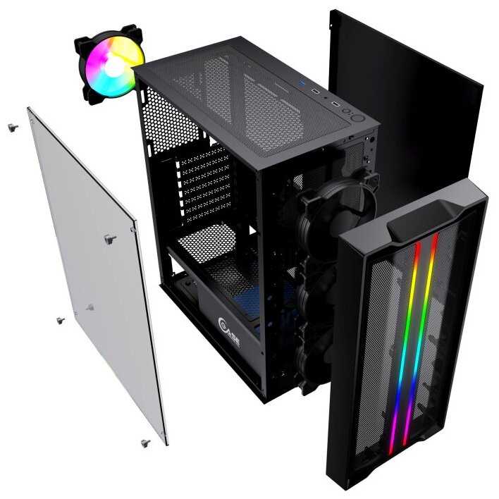 - Физическая кнопка на корпусе переключает 10+ режимов ARGB (статичный цвет, градиент, пульсация).
