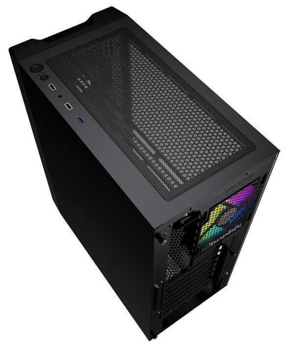Корпус обеспечивает отличную продуваемость благодаря сетчатой передней панели и оптимальному расположению вентиляторов. Три фронтальных кулера обеспечивают мощный вдув холодного воздуха, а задний эффективно отводит тепло, что подтверждается стабильными температурами даже под нагрузкой. Владельцы отмечают, что даже при использовании процессоров уровня Intel Core i7-14700K и видеокарт NVIDIA RTX 3080 система сохраняет компоненты в рабочих диапазонах. При этом воздушный поток равномерно распределяется по всему внутреннему объёму. -