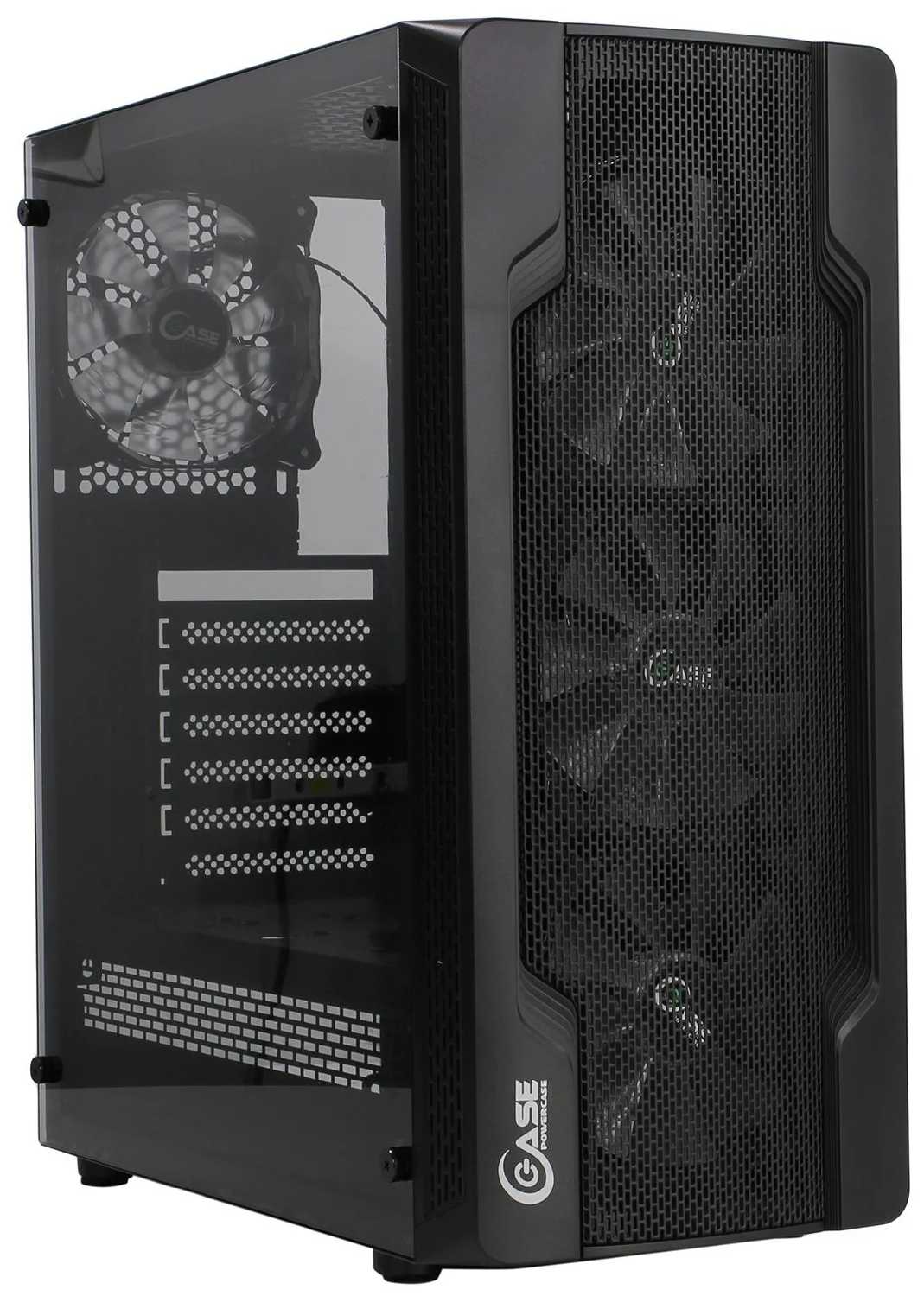 Комплектные вентиляторы (обычно 4 шт. – 3 на вдув спереди, 1 на выдув сзади) обеспечивают базовый воздухообмен, но их производительность ограничена. В отзывах отмечается "душность" при нагрузке: температура процессора может достигать 68-70°C на i5-12400F, видеокарты – до 80°C. Многие пользователи заменяют штатные вертушки на более мощные PWM-модели, что снижает температуры на 10-15°C. -