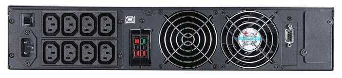 - + Установка в стойку, удобный мониторинг и управление, 2000 Вт, куча разъёмов и интерфейсов, набор защит, экран с подсветкой, Время автономии норм