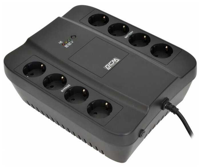 - + Эта модель от Powercom - один из самых бюджетных вариантов среди проверенных брендовых ИБП. Я уже три недели активно пользуюсь им, и в целом всё идёт гладко. Несколько раз тестировал сам: отключал электричество через рубильник, и устройство держит питание до двадцати минут, в зависимости от того, какая нагрузка на подключённую технику.