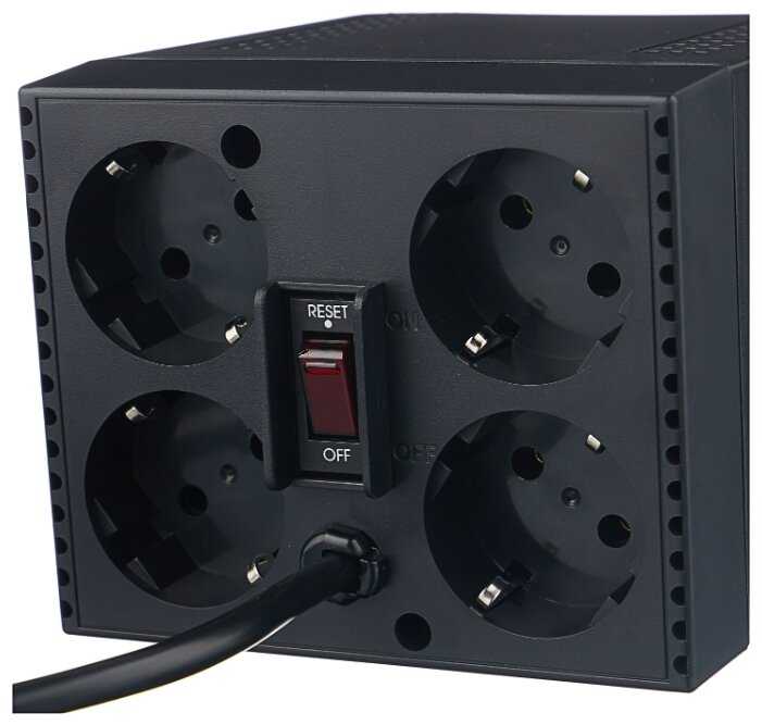 - + Безотказность, индикация режима, 4 полноценных розетки с заземлением.