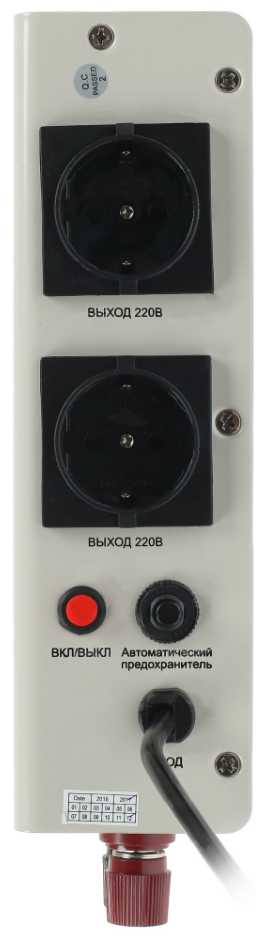 - Корректирует входное напряжение в диапазоне 175–270 В, защищая оборудование от скачков.