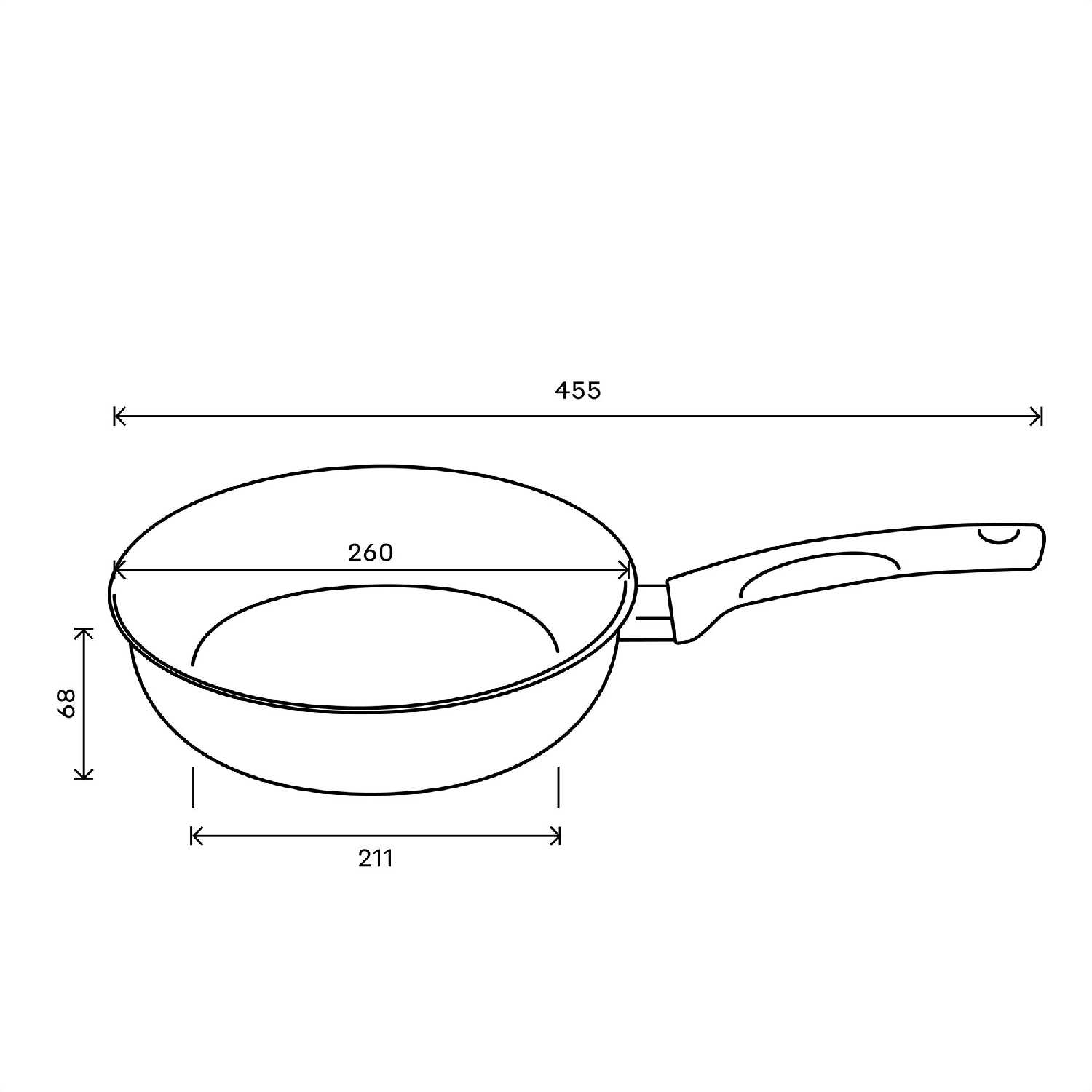 - Стандартный диаметр (20–28 см) позволяет использовать крышки от других сковород.