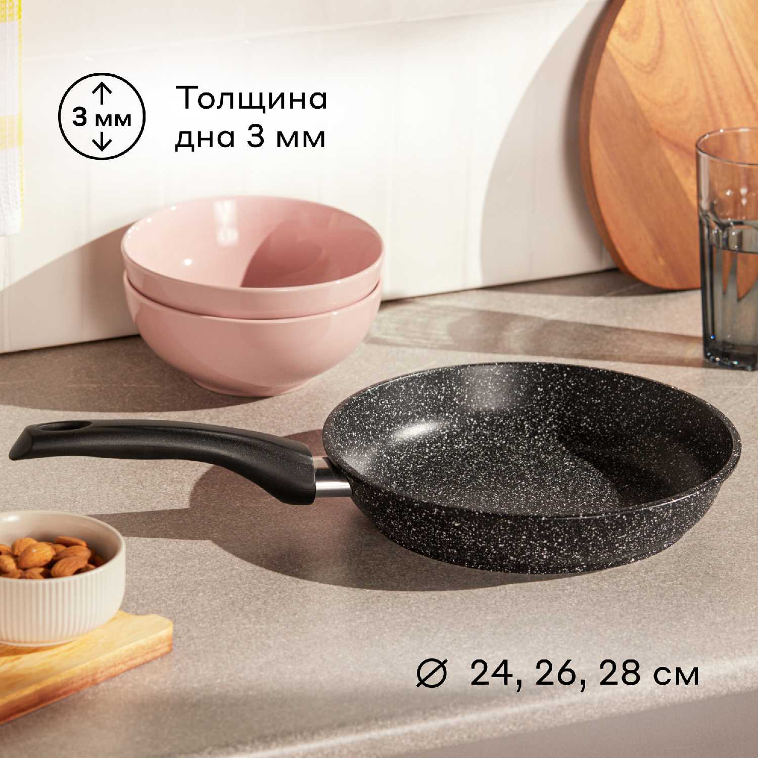 - Оптимальный диаметр 24 см для повседневного использования: