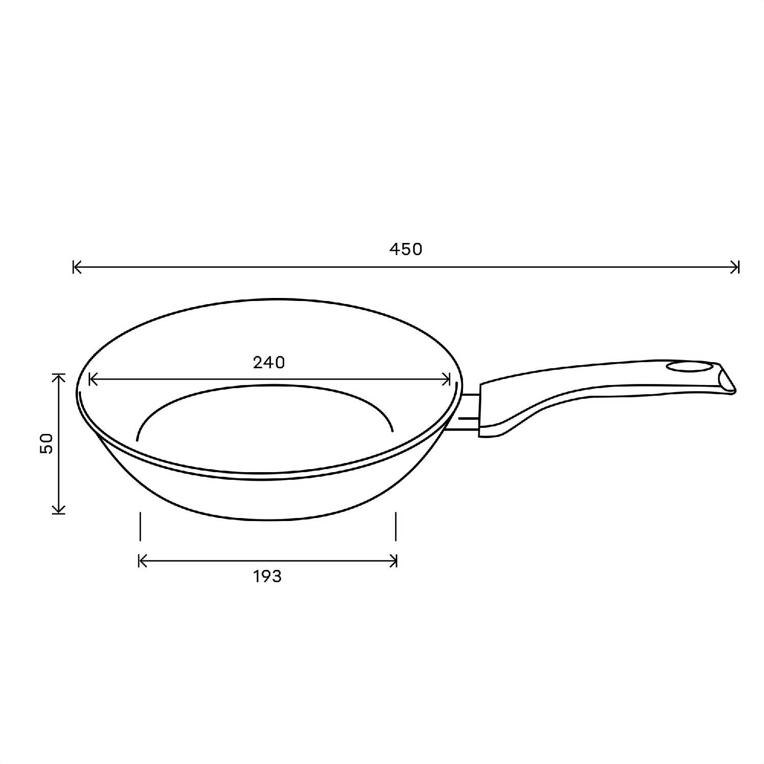 Высокие бортики умеренной глубины предотвращают выпадение содержимого при жарке и перемешивании, что особенно ценно при приготовлении котлет или овощных смесей. Плавные переходы от дна к стенкам и покатые края обеспечивают легкое соскальзывание пищи при переворачивании и сервировке. Отсутствие сужения ко дну сохраняет полезную площадь для жарки, позволяя размещать продукты по всей поверхности. Единое покрытие внутренней и внешней части (кроме дна) упрощает уход и поддерживает эстетичный вид посуды.