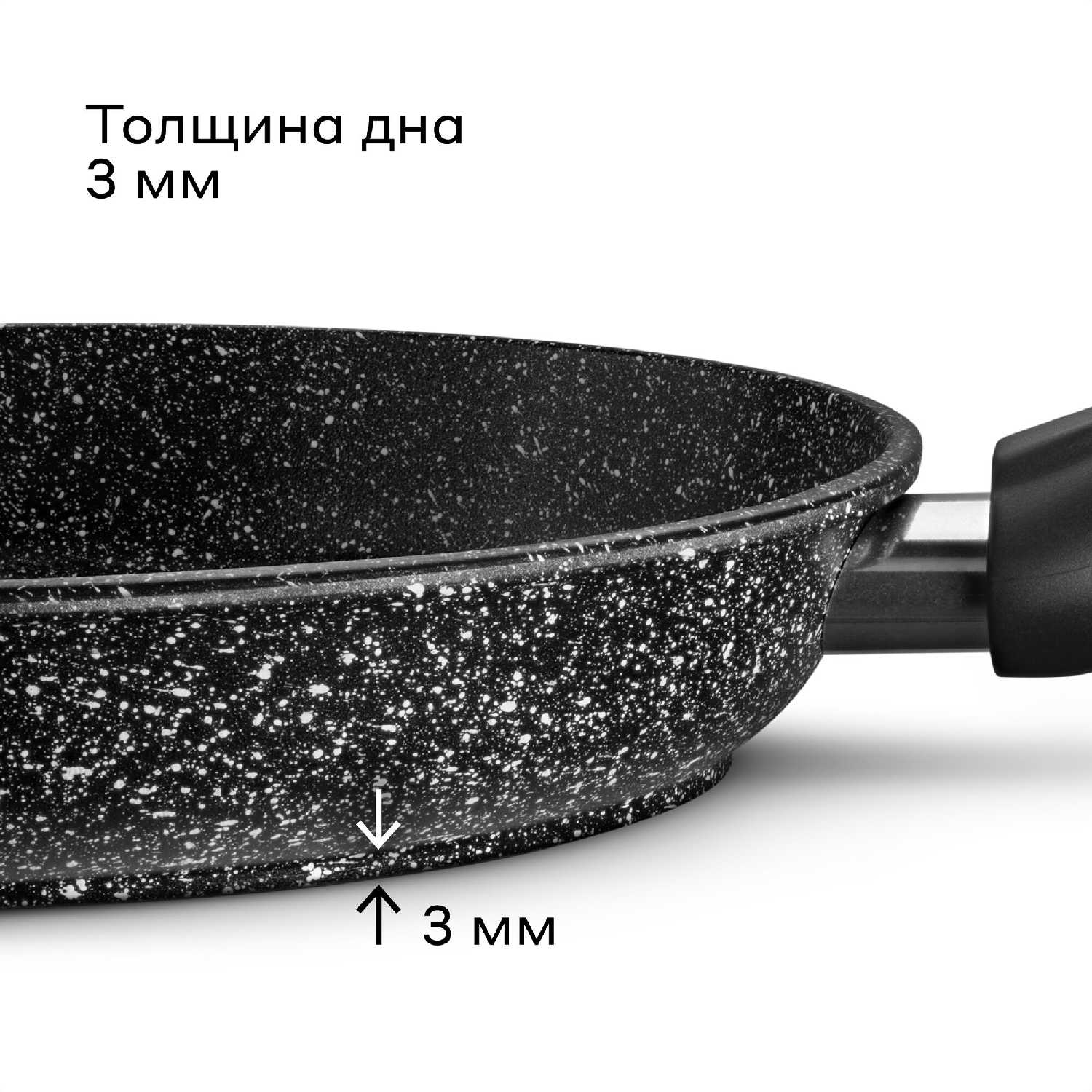 - Толщина дна способствует стабильному распределению тепла, предотвращая локальные перегревы при жарке мяса или овощей и обеспечивая корочку без пригорания.