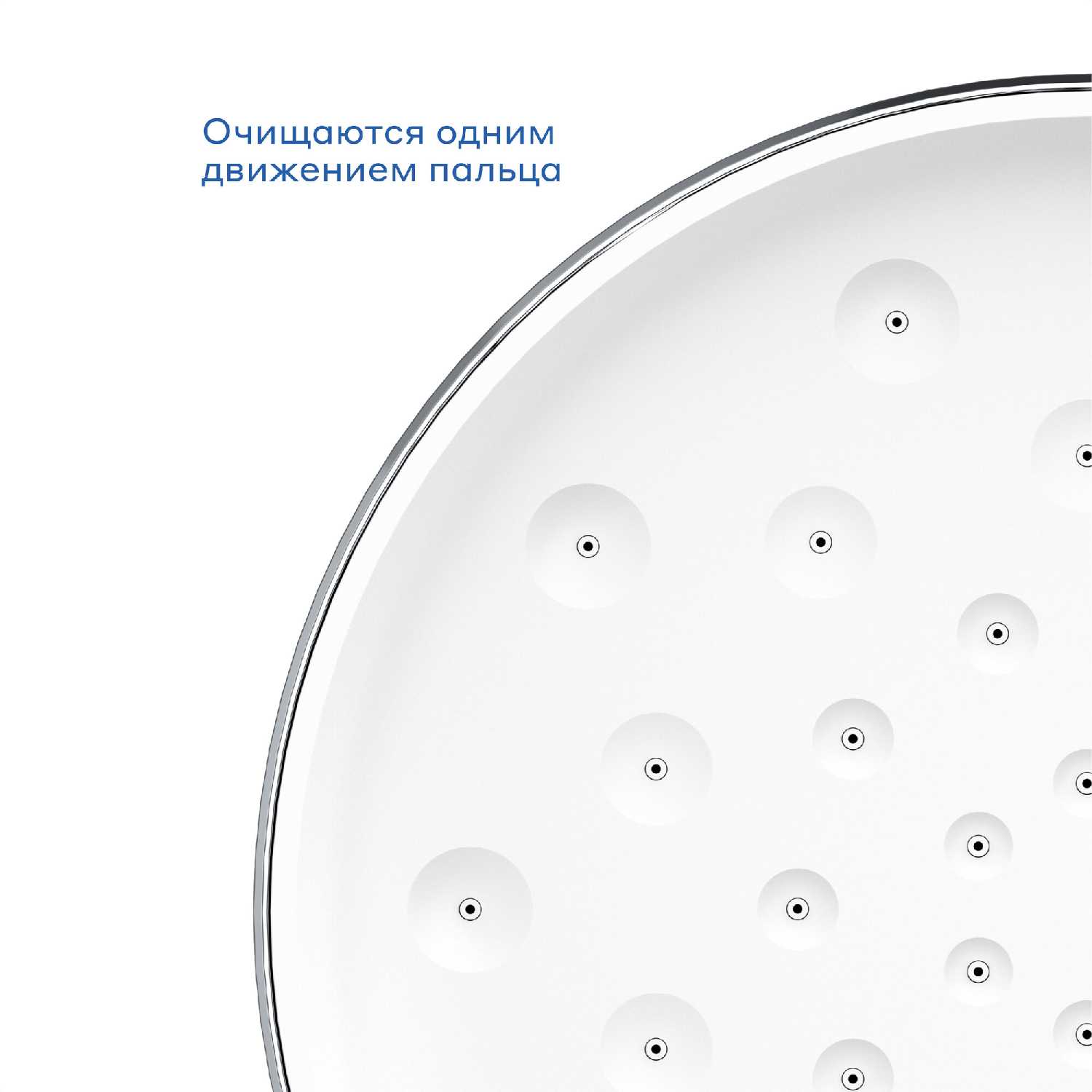 Форсунки полностью утоплены в матовый пластиковый корпус, что предотвращает накопление грязи на выступающих элементах. Отзывы подтверждают, что в отличие от дешёвых аналогов, отверстия не забиваются при регулярном использовании до 4-6 месяцев. Однако при жёсткой воде через несколько месяцев возможно появление известковых отложений, требующих чистки. -