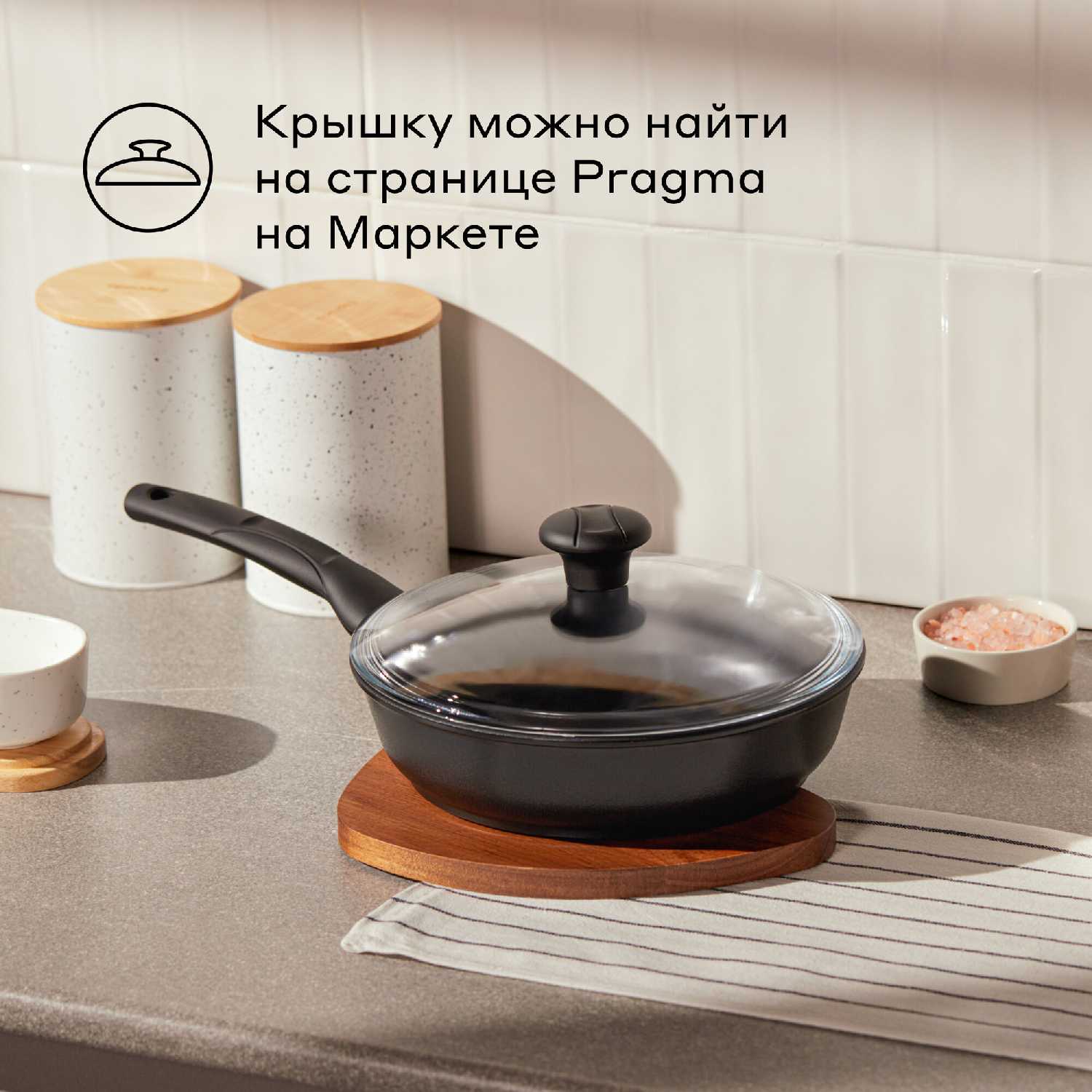 Крышка продаётся отдельно, но стандартные модели диаметром 24 см (например, от старых сковородок) подходят идеально. Пользователи советуют докупать крышку того же бренда — она плотно прилегает без "болтания", что важно для тушения. -