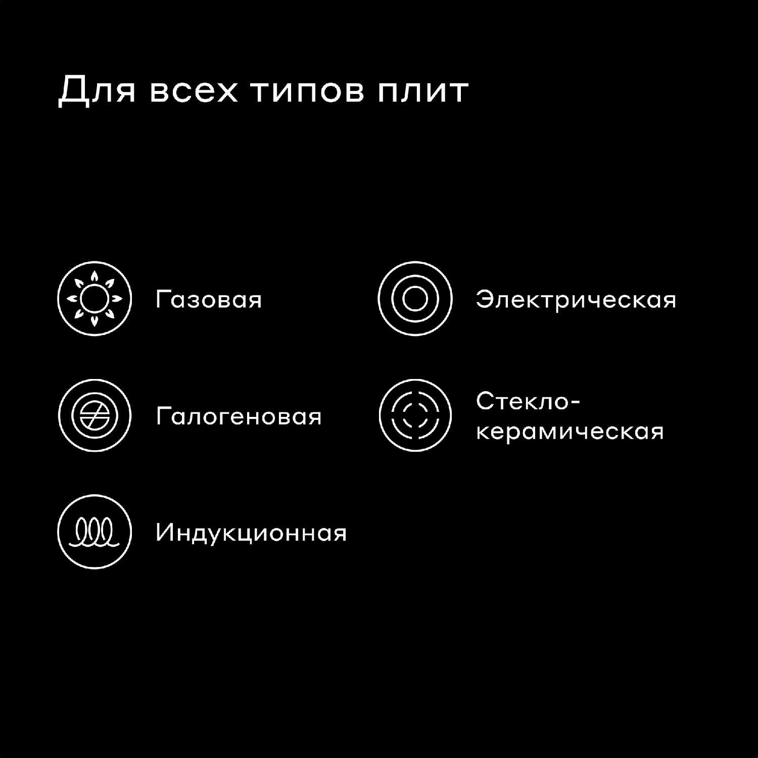 - Идеальная геометрия дна для индукционных плит: плотный контакт по всей поверхности.