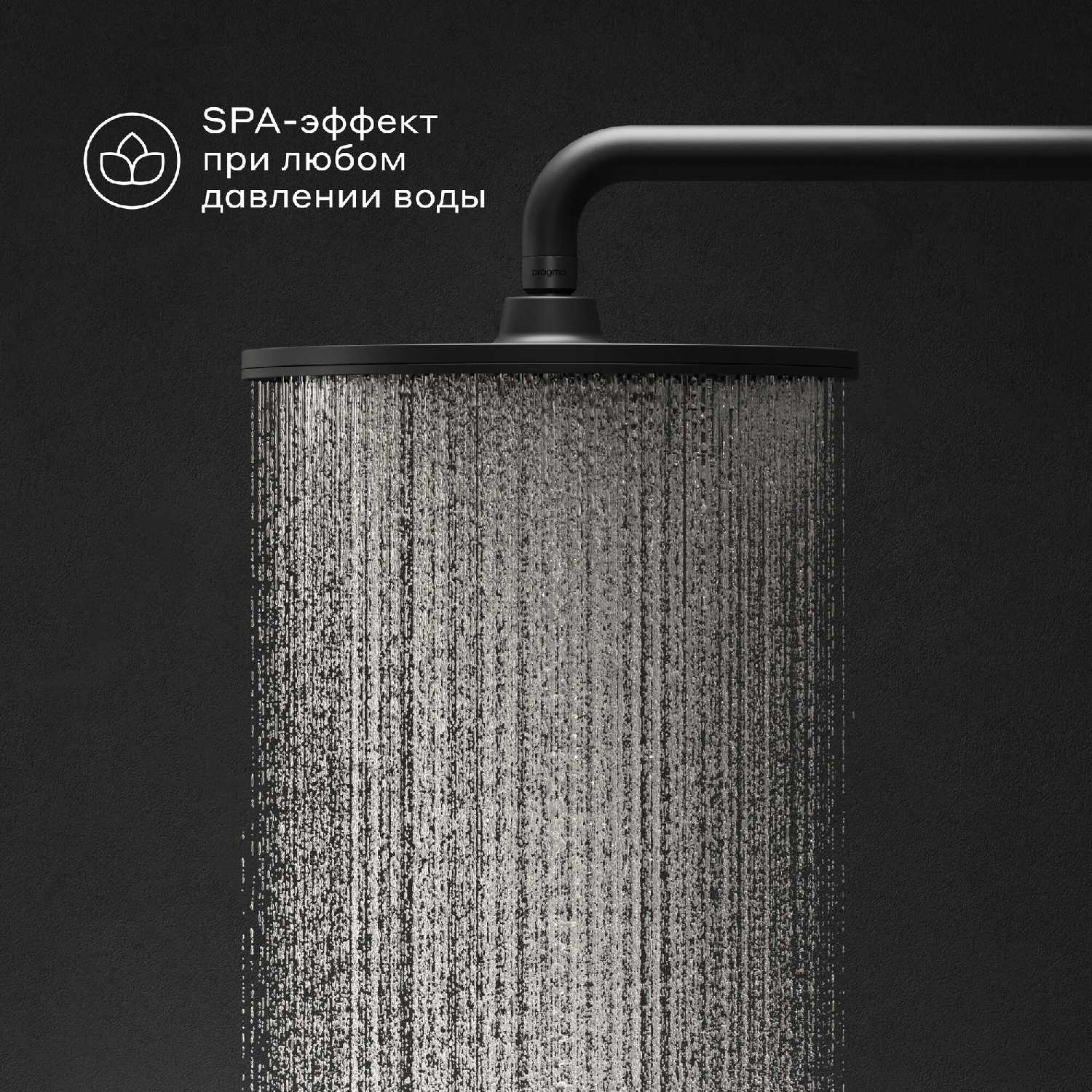 - + Хороший верхний душ, с большим количеством дырочек, которые имеют силиконовые насадки (легко очищаются в случае засора, больше не нужно снимать и прочищать каждую дырочку достаточно нажать на них). После выключения вода из него не капает, не подтекает.