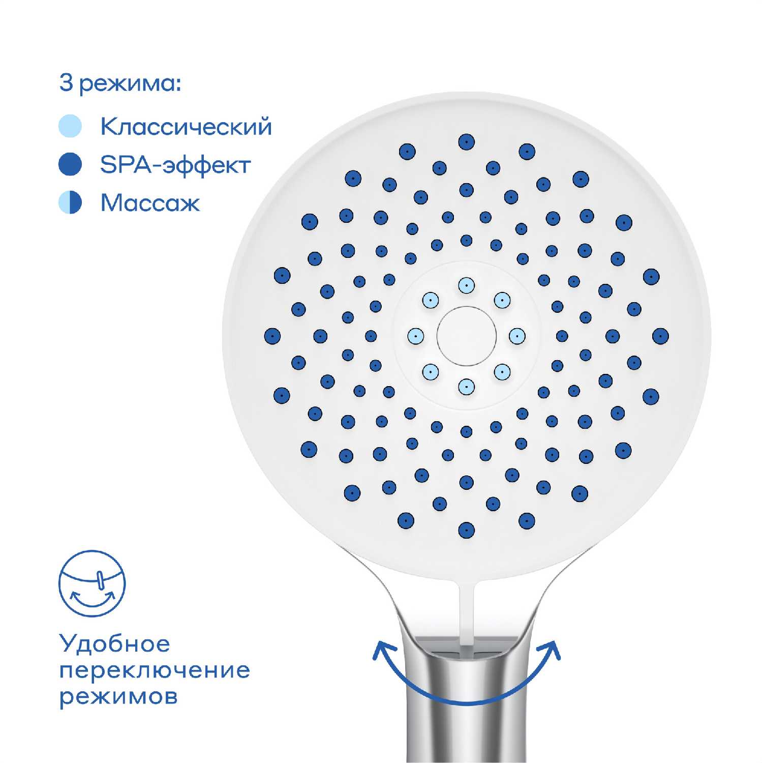 | Режимы : | массажная струя, мягкая струя, смешанная струя, тропический дождь |