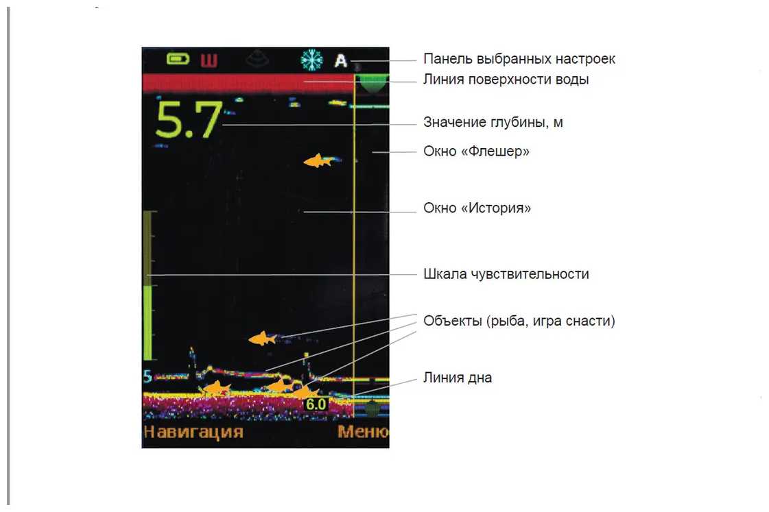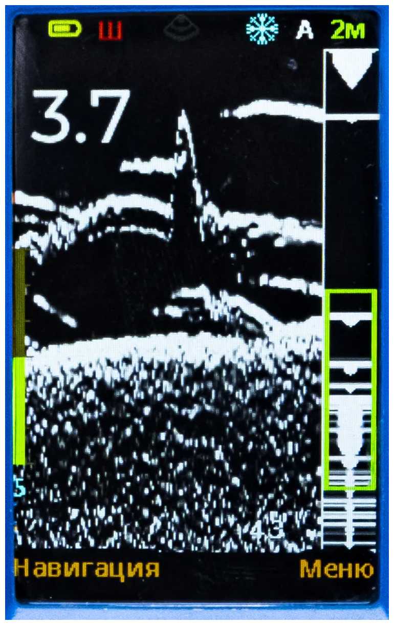 - Экран обеспечивает четкое отображение дна, рыбы и приманки даже на глубине 8 метров, что подтверждается отзывами о видимости свалов и «мертвых зон».