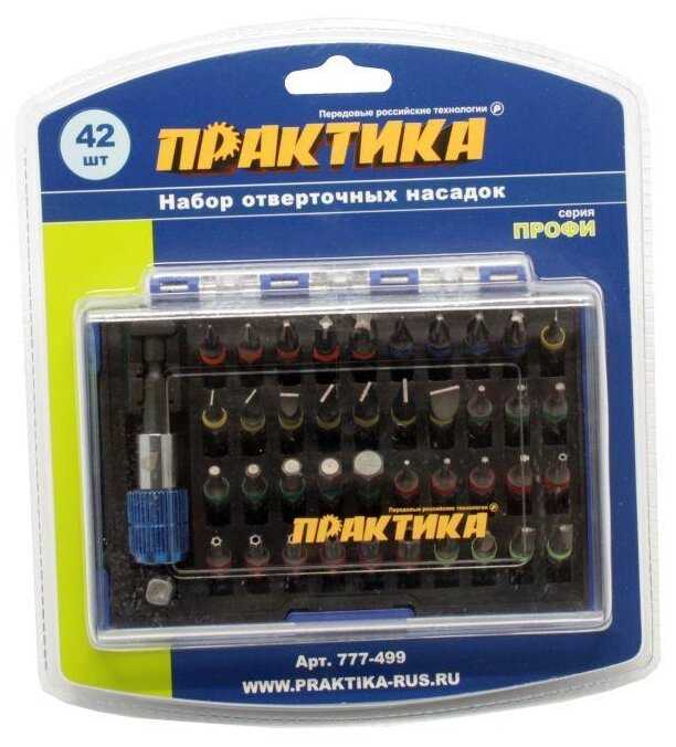 | Биты подробно : | Биты шестигранные Hex (H) H1.5, H2, H2.5, H3, H4, H5, H6, H8 Биты звездочки Torx (T) T25H, T27H, T30H, T40H, T6, T7, T8, T9, TH10, TH15, TH20 Биты плоские прямые (SL) SL3, SL4, SL4.5, SL5, SL6, SL6.5, SL7, SL8 Биты крестовые Phillips (Ph) PH0, PH1, PH2, PH3, PH4 Биты крестовые Pozidriv (PZ) PZ0, PZ1, PZ2, PZ3 Другие биты Tri-Wing 1, Tri-Wing 2, Tri-Wing 3, Tri-Wing 4 |