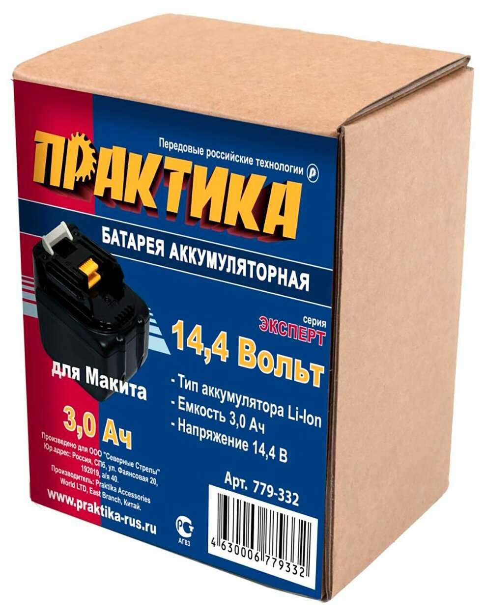 | Дополнительная информация : | Аккумулятор для MAKITA ПРАКТИКА 14.4В, 3.0Ач, Li-Ion, коробка |