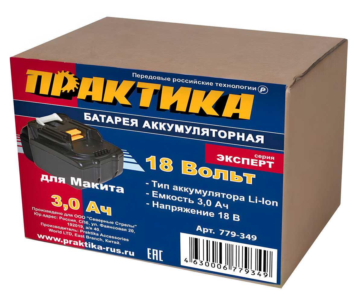 | Дополнительная информация : | Аккумулятор для MAKITA ПРАКТИКА 18 В, 3.0Ач, Li-Ion, коробка |