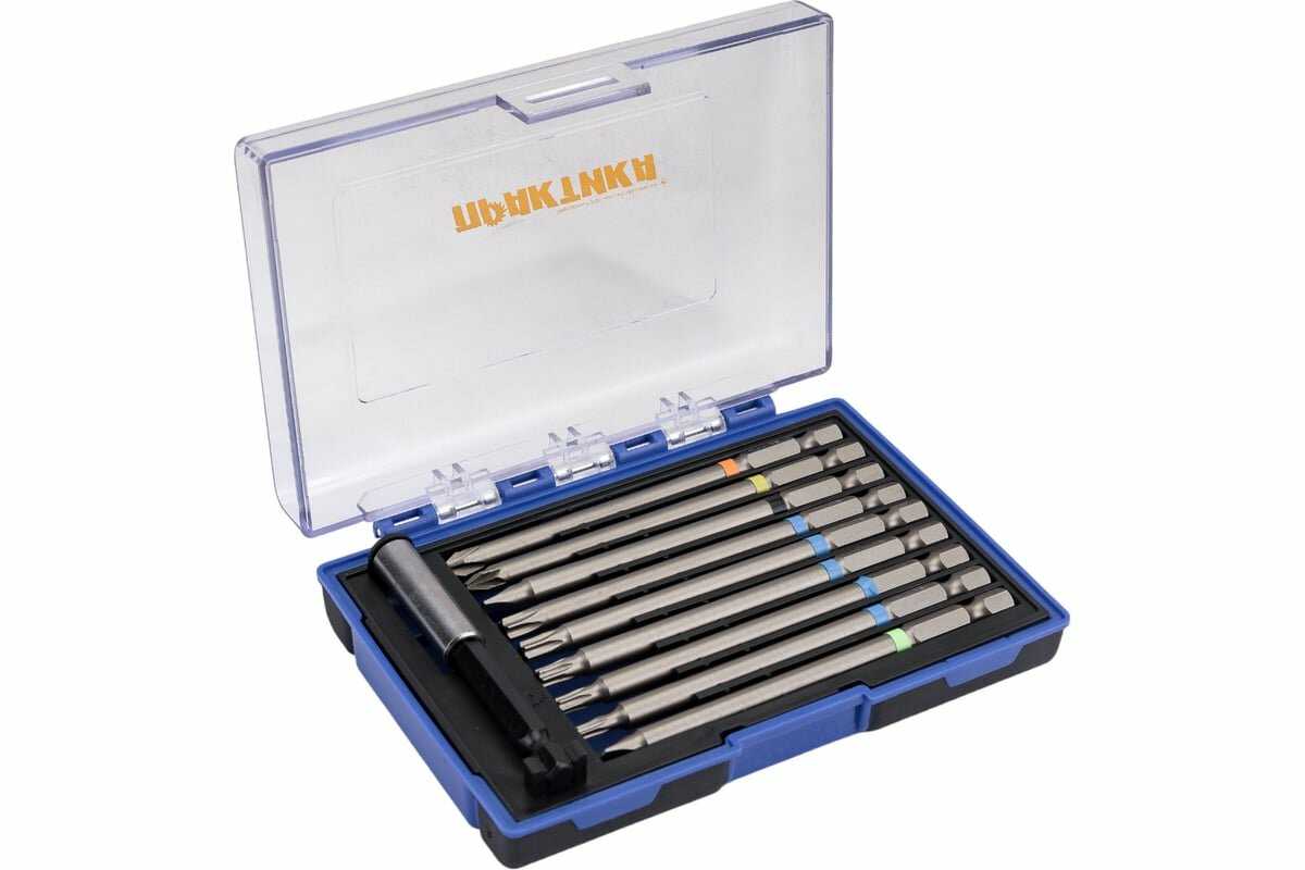 Биты подробно : | Набор бит ПРАКТИКА "Профи" 10шт, 100 мм, PH, PZ, SL, Torx, держатель 75 мм |