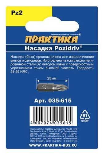 Биты подробно : | PZ2 * 25мм |
