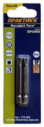 | Дополнительная информация : | Бита ПРАКТИКА Torx 30х50мм 2шт |