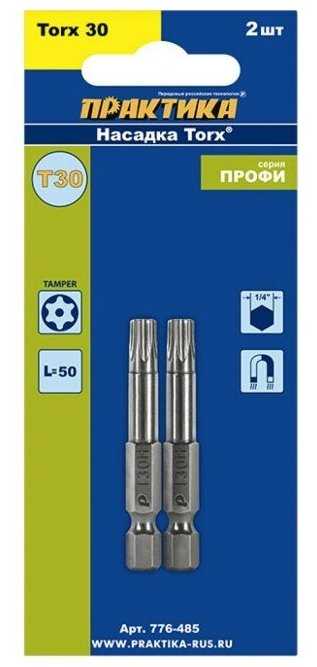 Дополнительная информация : | Бита ПРАКТИКА Torx 30х50мм 2шт |