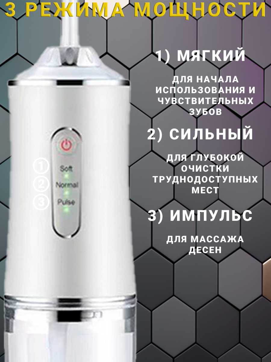 - Достаточная мощность струи для удаления остатков пищи из межзубных пространств.
