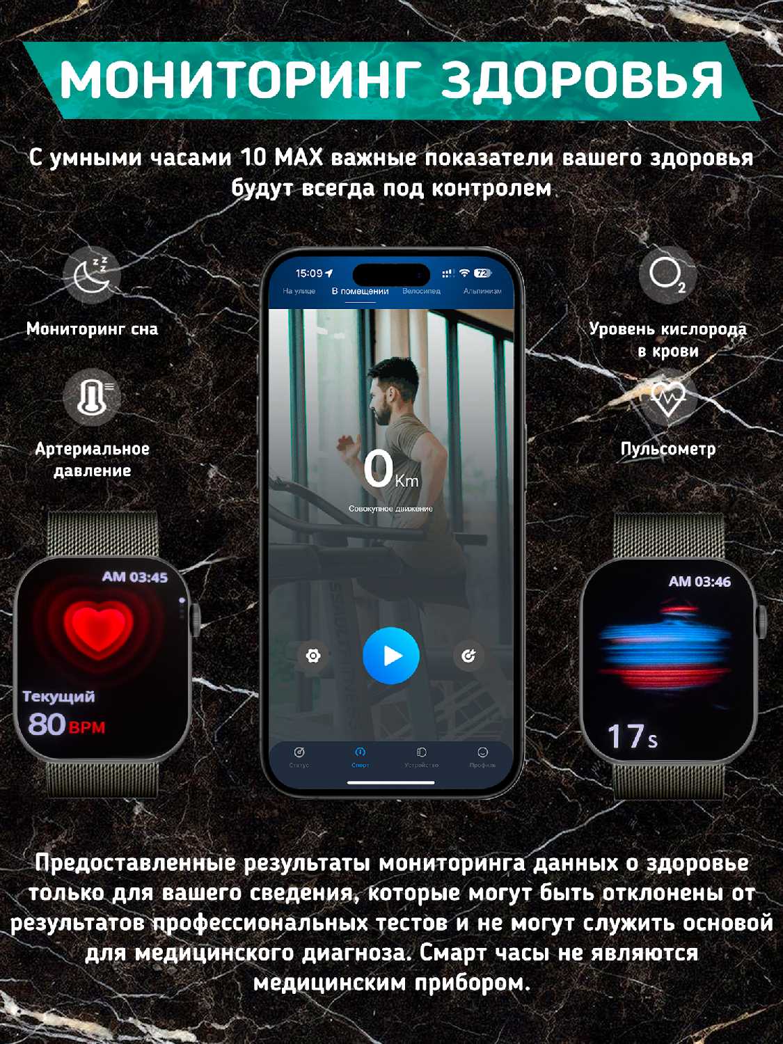 | Мониторинг : | калорий, пульса, сна, уровня кислорода в крови, физической активности, частоты дыхания |