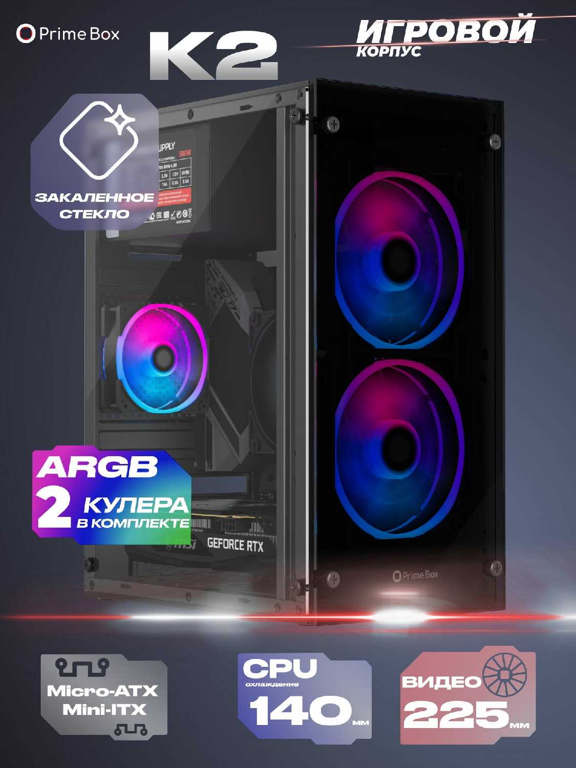 Отзывы о Корпус K2 + 2 ARGB вентилятора + закаленное стекло, Micro-ATX, Mini-ITX