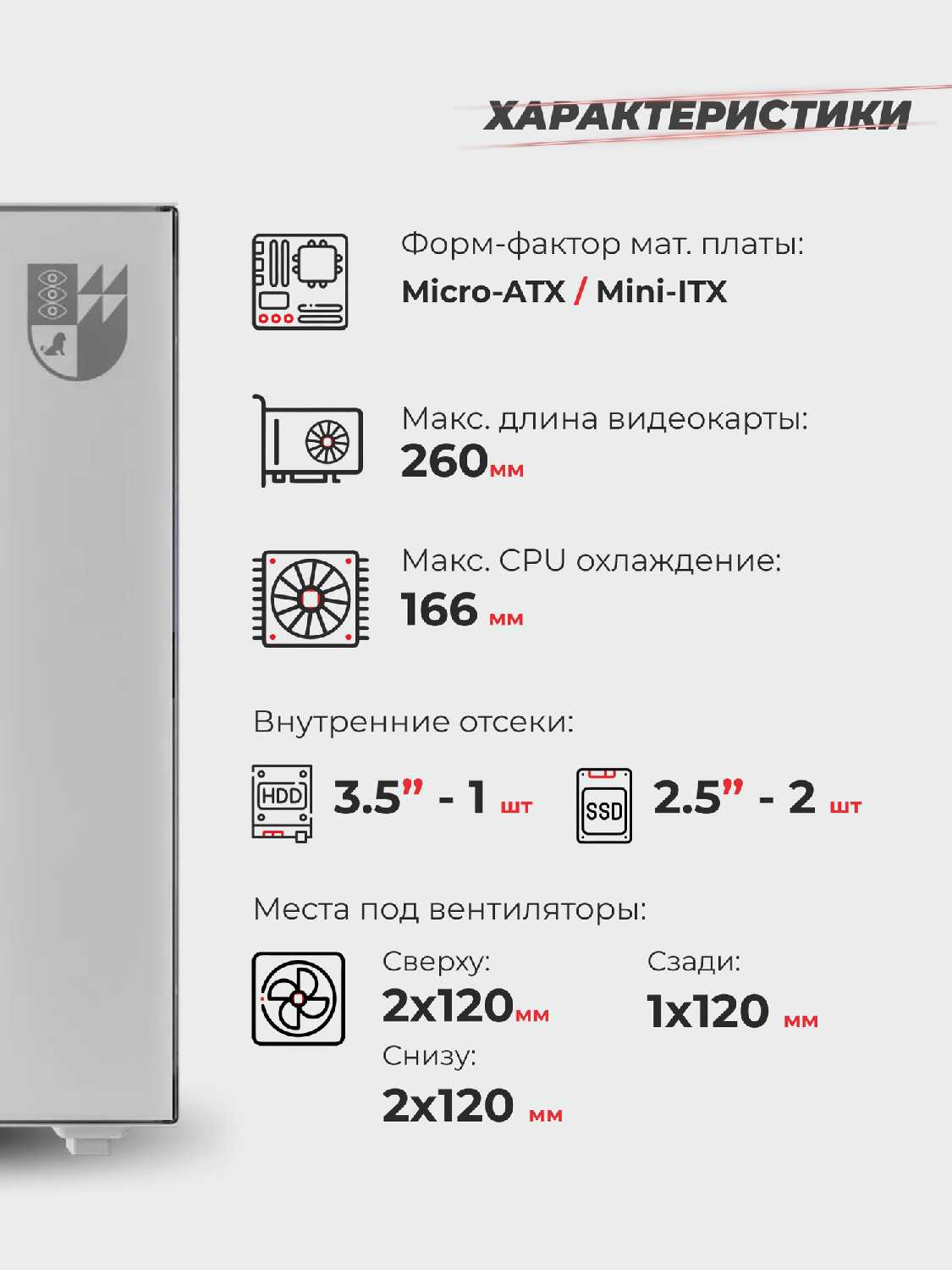 - Максимальная длина видеокарты: 260 мм