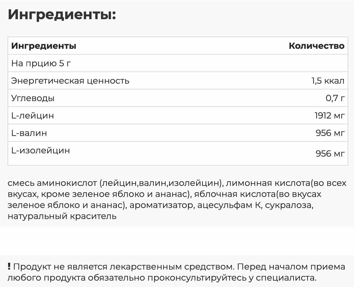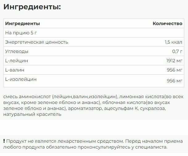 Основной ингредиент : | лизин, глутамин, изолейцин, лейцин, валин |