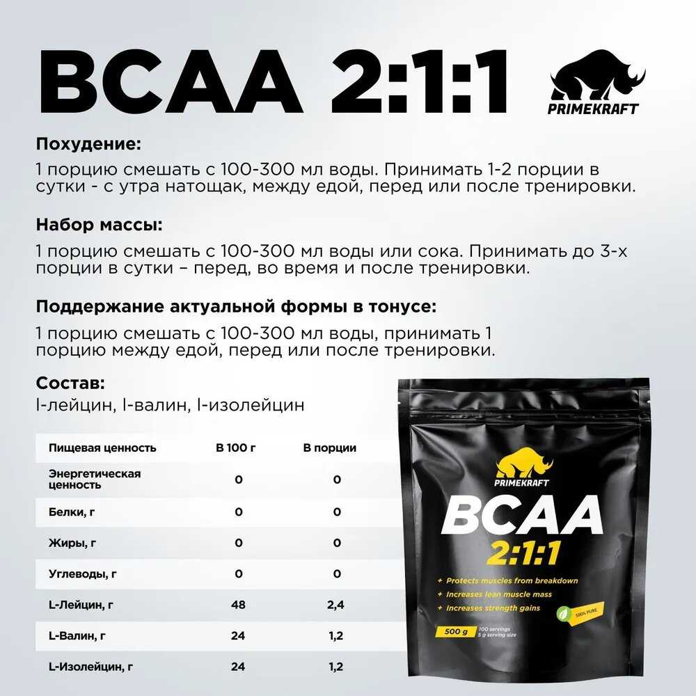 Продукт выпускается в форме порошка с разным соотношением аминокислот (2:1:1, 8:1:1), что влияет на горьковатый привкус «чистых» вариантов. Удобная банка с мерной ложкой рассчитана на длительное использование: при дозировке 5 г/день упаковки 500 г хватает на 3–4 месяца. Ключевое применение — приём во время тренировки для повышения выносливости или утром для ускорения восстановления. Отмечено, что добавка особенно эффективна в сочетании с протеином и креатином. Интересный пример — пользователь, заменяющий BCAA воду в течение дня для борьбы с усталостью на физически demanding работе.