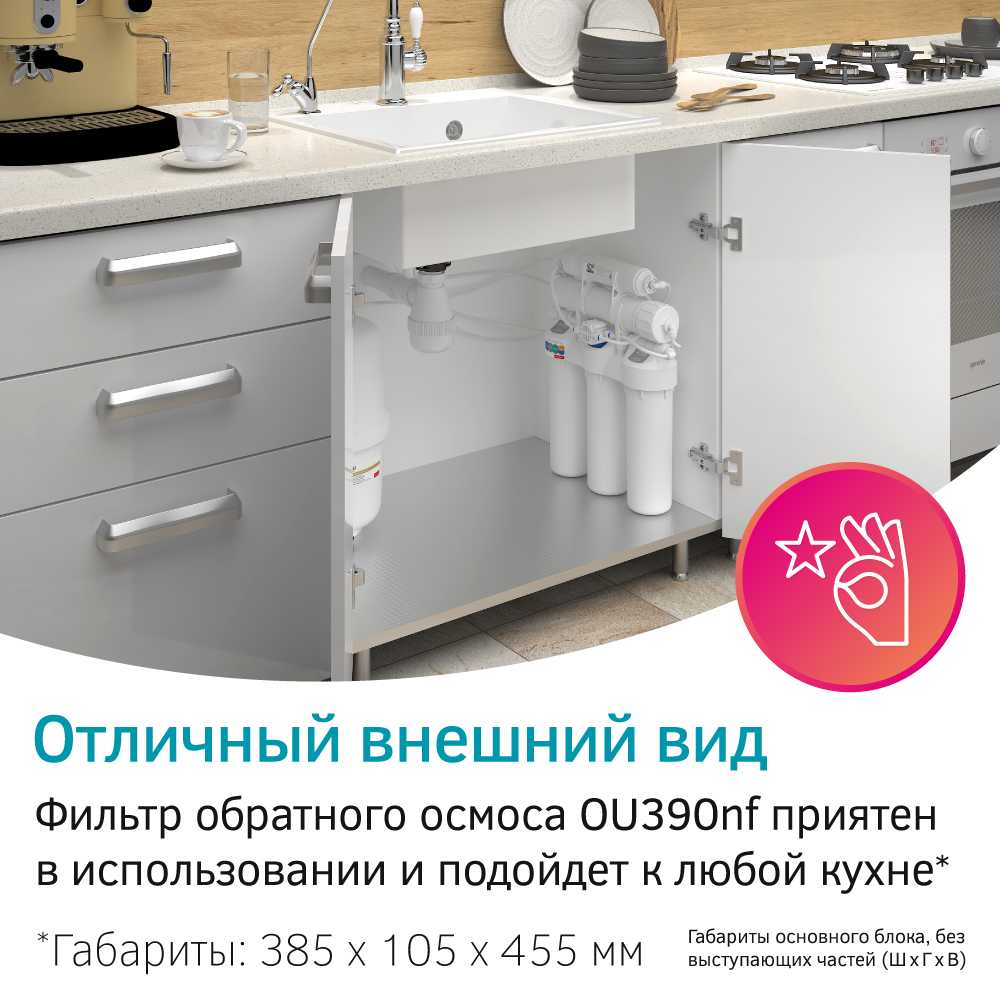 Система требует достаточного свободного пространства под мойкой для размещения блока фильтров и накопительного бака объемом около 10 литров. Некоторые пользователи отмечают, что система достаточно объемная, но при этом бак характеризуется как аккуратный и не чрезмерно громоздкий. Важно обеспечить удобный доступ для регулярного обслуживания и замены картриджей. Также необходимо предусмотреть подключение к дренажной системе для отвода концентрата. -