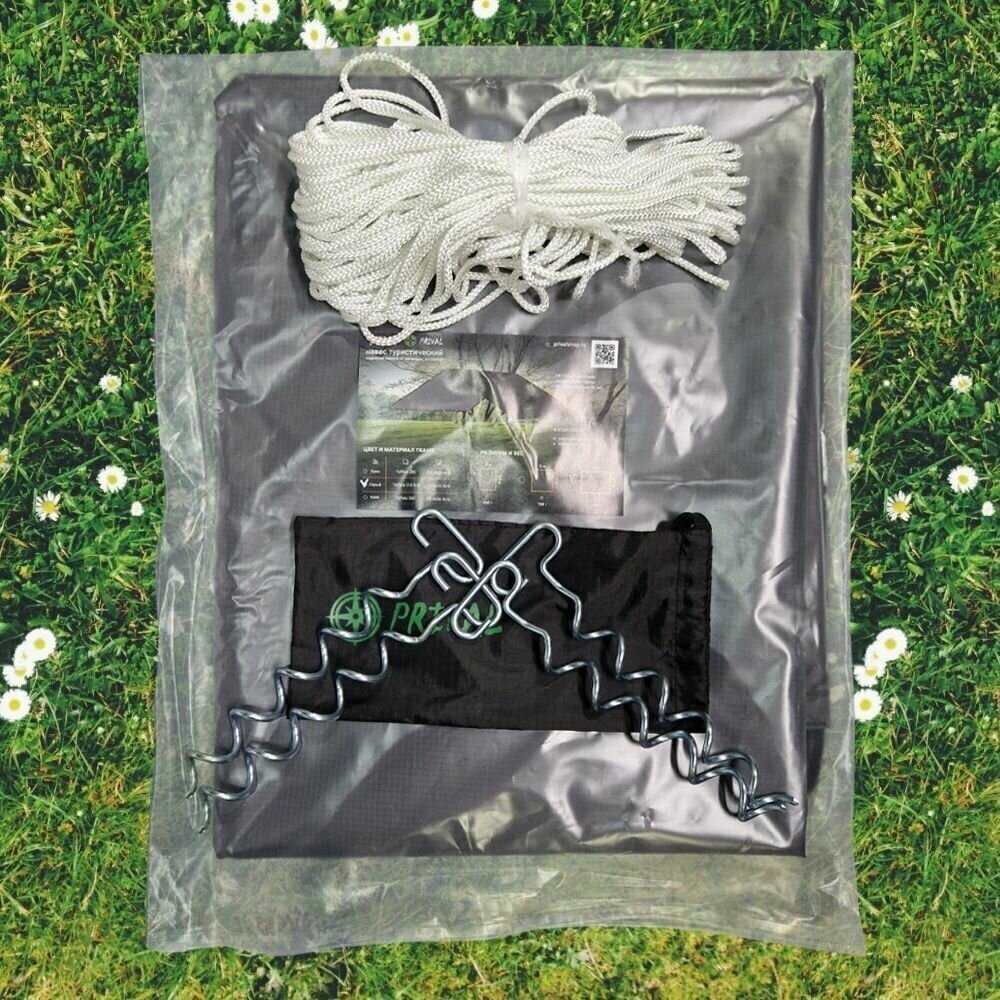 - + Крутой материал, крепкие места креплений, добротные колышки спиралью в комплекте, размер 3*4 - кайф