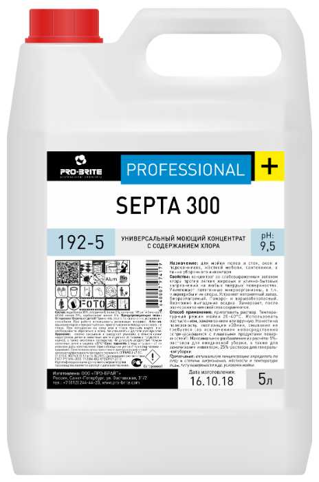 Характеристи Pro-Brite Универсальный моющий концентрат с содержанием хлора Septa 300