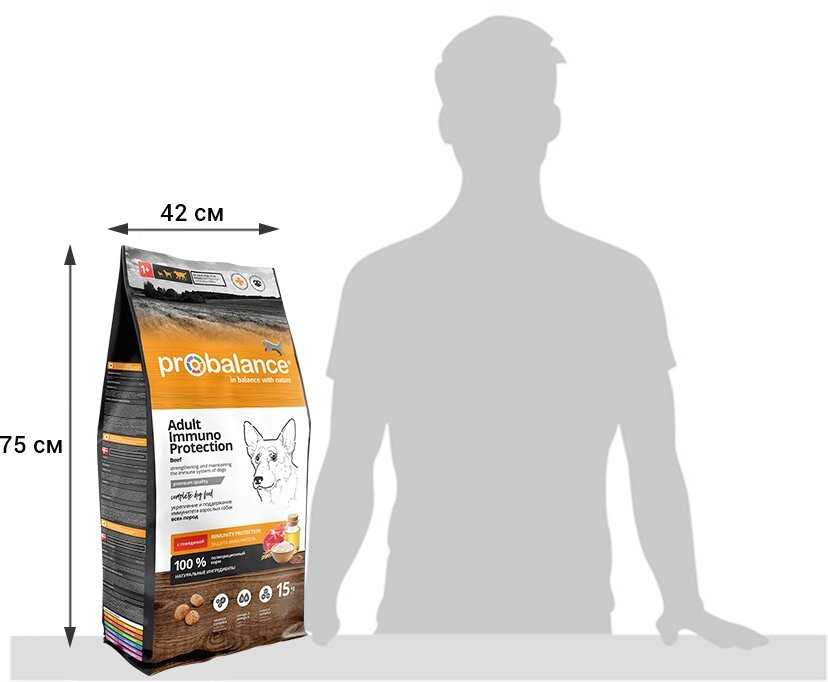 - Универсальный размер позволяет использовать один корм для собак разного веса, от 30 кг до мелких, упрощая хранение и распределение порций.