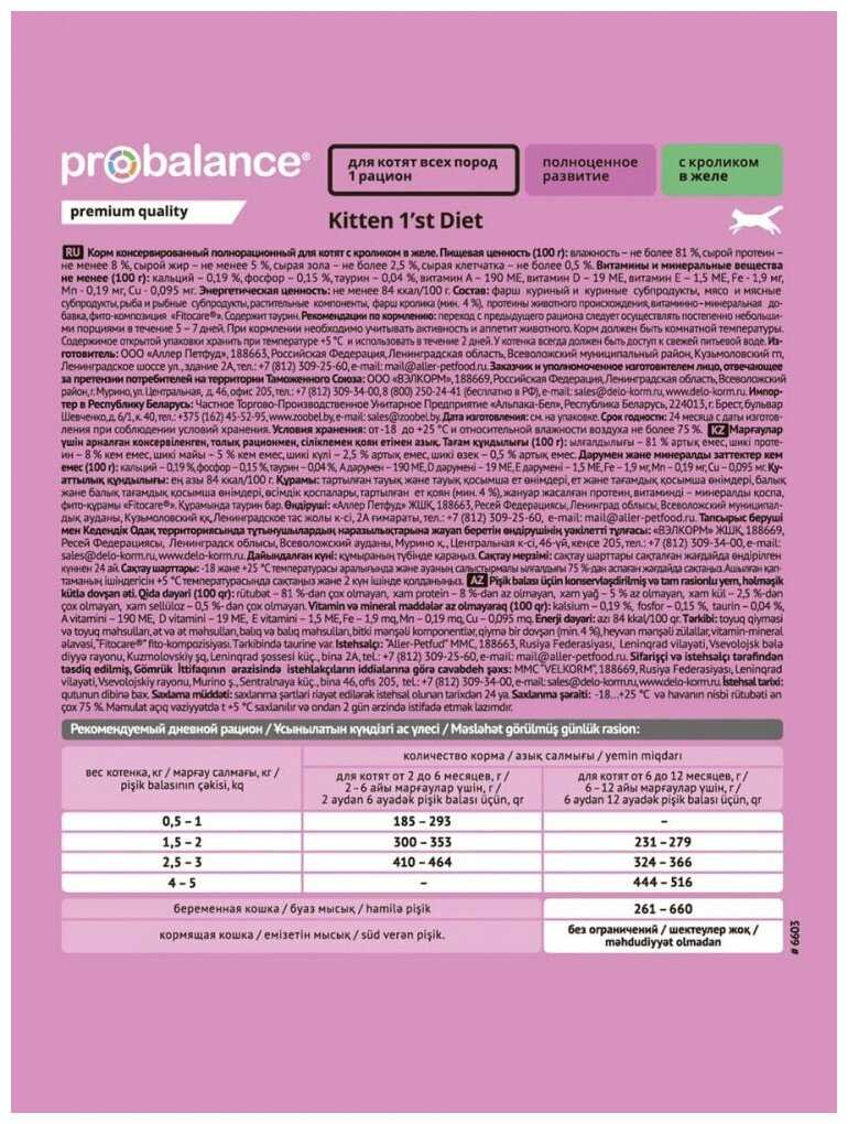 При покупке котёнка у заводчика уже были осведомлены о том, что для кормления подойдёт ПроБаланс. Сейчас нашей девочке уже 8 месяцев, кормим влажным кормом ПроБаланс ежедневно, всё хорошо, сам корм имеет плотные кусочки и немного желе, пахнет легко и ненавязчиво, у кошки хорошая шерсть и зубы, и нормальный запах изо рта 🙂 Иногда конечно балуем всякими вкусняшками и печеньками, но в целом этот корм очень даже хорошо и выгодно подходит для ежедневного кормления.