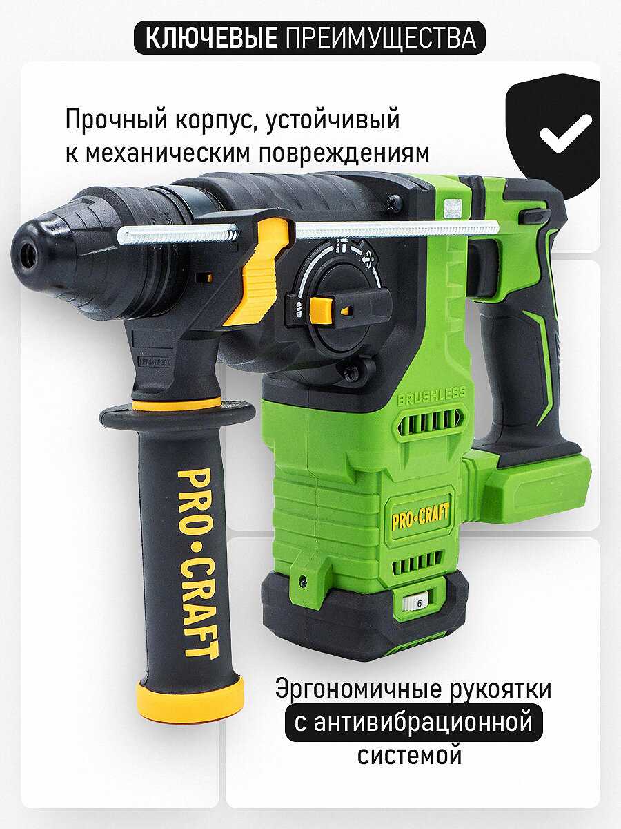 Отзывы о Перфоратор аккумуляторный бесщеточный PROCRAFT PHA30
