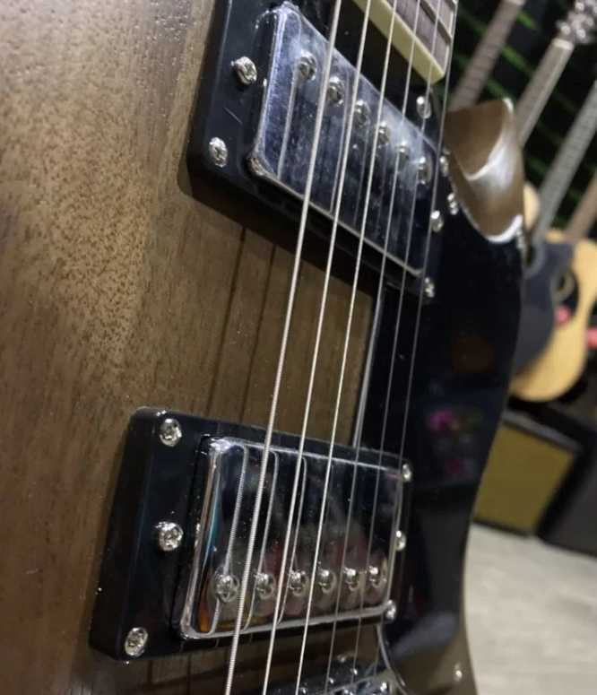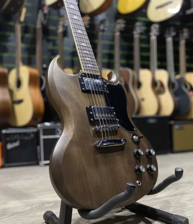 - + Инструмент привёз курьер. Коробка целая. Гитара в идеальном состоянии: ни сколов, ни трещин. Несмотря на то, что инструмент бюджетный, но выглядит довольно солидно. Тактильно очень приятно ощущается в руках. Лады не царапают. Звук стоковых звукоснимателей очень уверенный и характерный для sg. Большой плюс - гриф не перевешивает, как это бывает у данной модели гитар.
