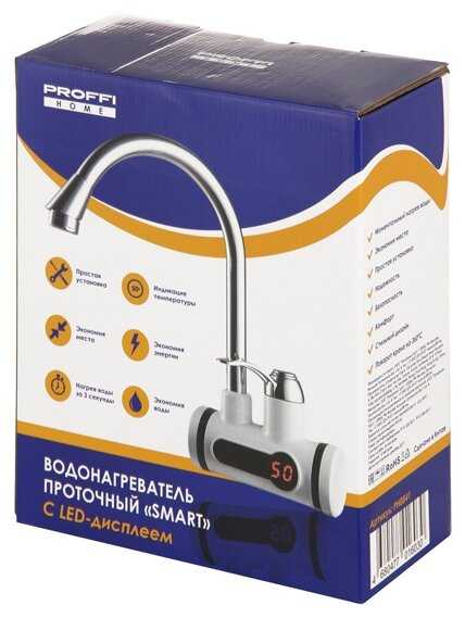 - + Мне понравилась простота монтажа и последующего использования по назначению.Имеется цифровое табло температуры нагрева, цвет цифр красный. При отсутствии воды защита не позволяет включать нагрев, что предохраняет ТЭН от перегорания . Добавляю свой отзыв…Может кому-то будет полезно. Если кран не будет демонтирован на зиму, то обязательно нужно слить воду из полости нагревателя, где установлен ТЭН. Оттуда воду нужно сливать через боковую крышку, расположена слева от излива,с торца. Если этого не сделать,то можно разморозить нагреватель…Я эту ошибку допустил, но лопнула только крышка,все остальное оказалось целым-очень повезло)).Заодно можно проверить количество накипи.При сборке не нужно чрезмерно затягивать крышку, а легко подвернуть до прекращения каплепадения при включённом кране.Ремонтируется крышка тоже легко:взял крышку от баночки с зубочистками,она оказалась по диаметру на пару миллиметров больше, обезжирил и залил эпоксидкой,не забудьте проделать отверстие для сообщения с атмосферой в крышке после ремонта!