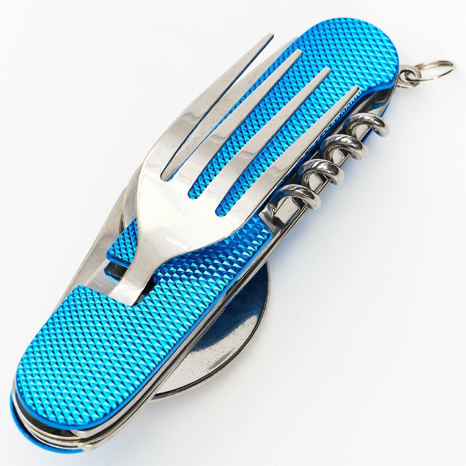 Отзывы о Мультитул походный приборы: нож, вилка, ложка, открывашка (красный)