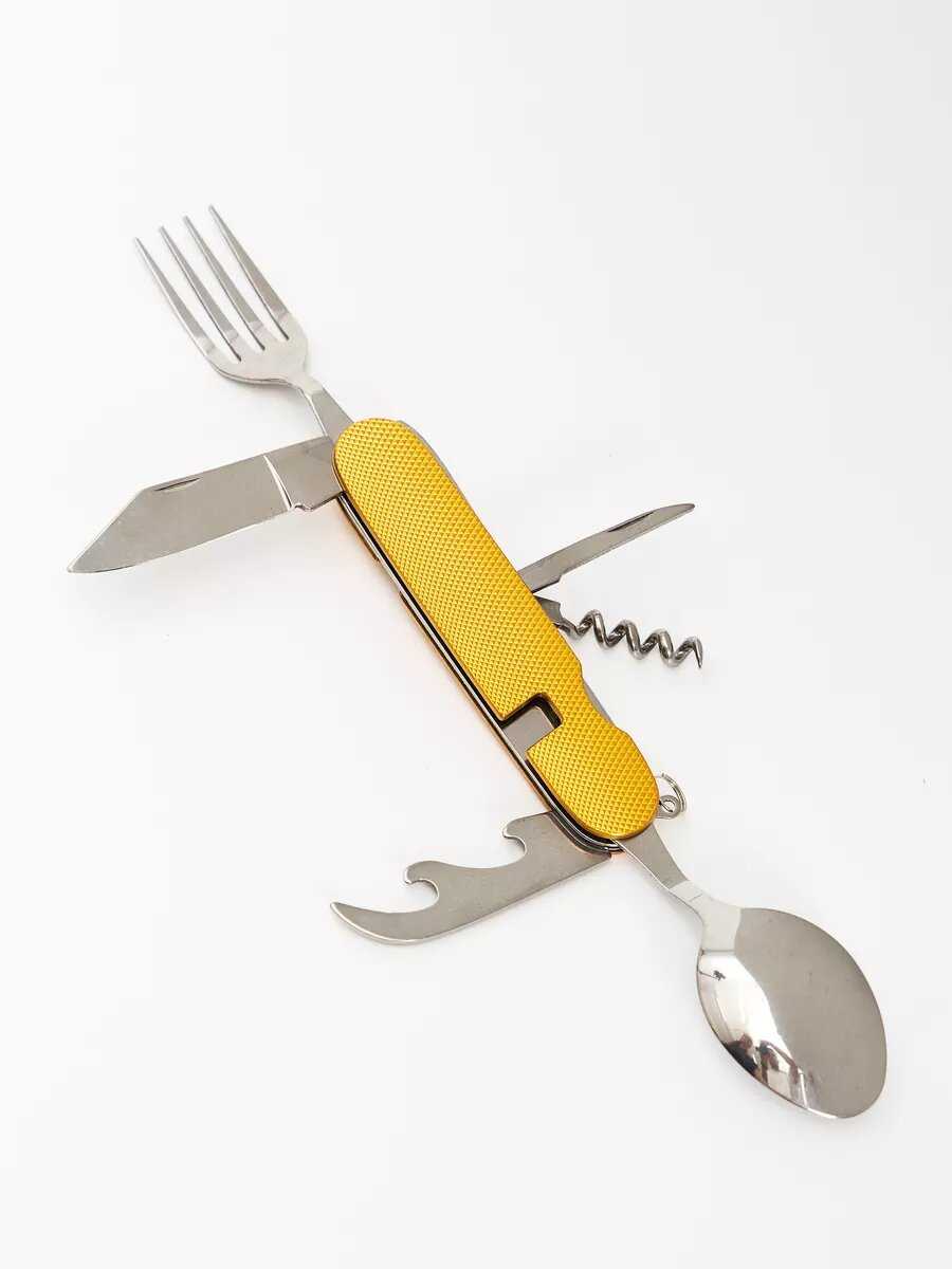 Отличный мультитул. Разбирается на две части: ложка и вилка. Потом можно обратно соединить. Металл качественный, не ржавеет. Доставка быстрая - рекомендую!