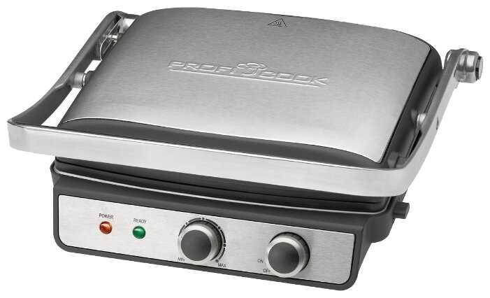 - + Очень быстро обжаривает мясо до хорошей корочки, так как жари одновременно с обеих сторон. Получаеттся вкуснее, чем когда жаришь на сковородке.