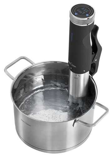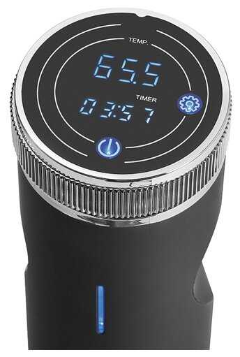 Отличная су-видница. Выглядит интересно, места много не занимает, с функциями своими вполне справляется. Работает отлично, не шумит. Температуру и выставленное время выдерживает. Очень удобно с ней готовить еду. Готовлю в основном мясо и оно мягкое получается. Докупил большую кастрюлю для приготовления и чтобы вода не выкипала быстро.