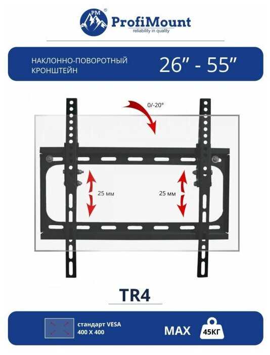 9 отзывов пользователей o ProfiMount Кронштейн наклонный настенный для ТВ (TR4)