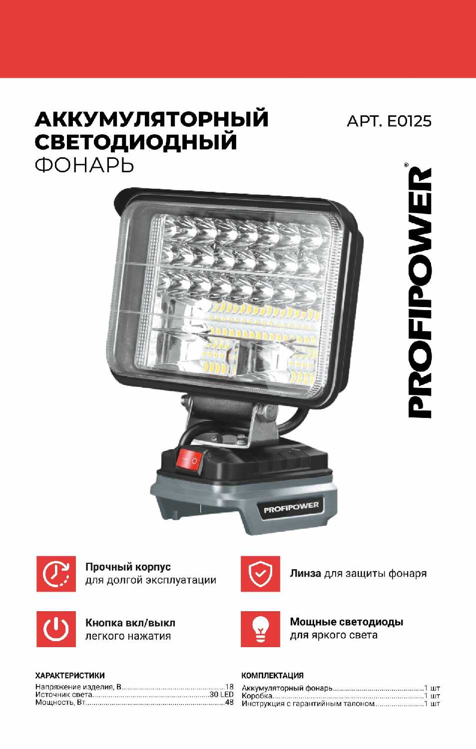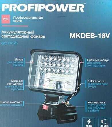 Отзывы о Фонарь светодиодный аккумуляторный ProfiPower MKDEB-18V