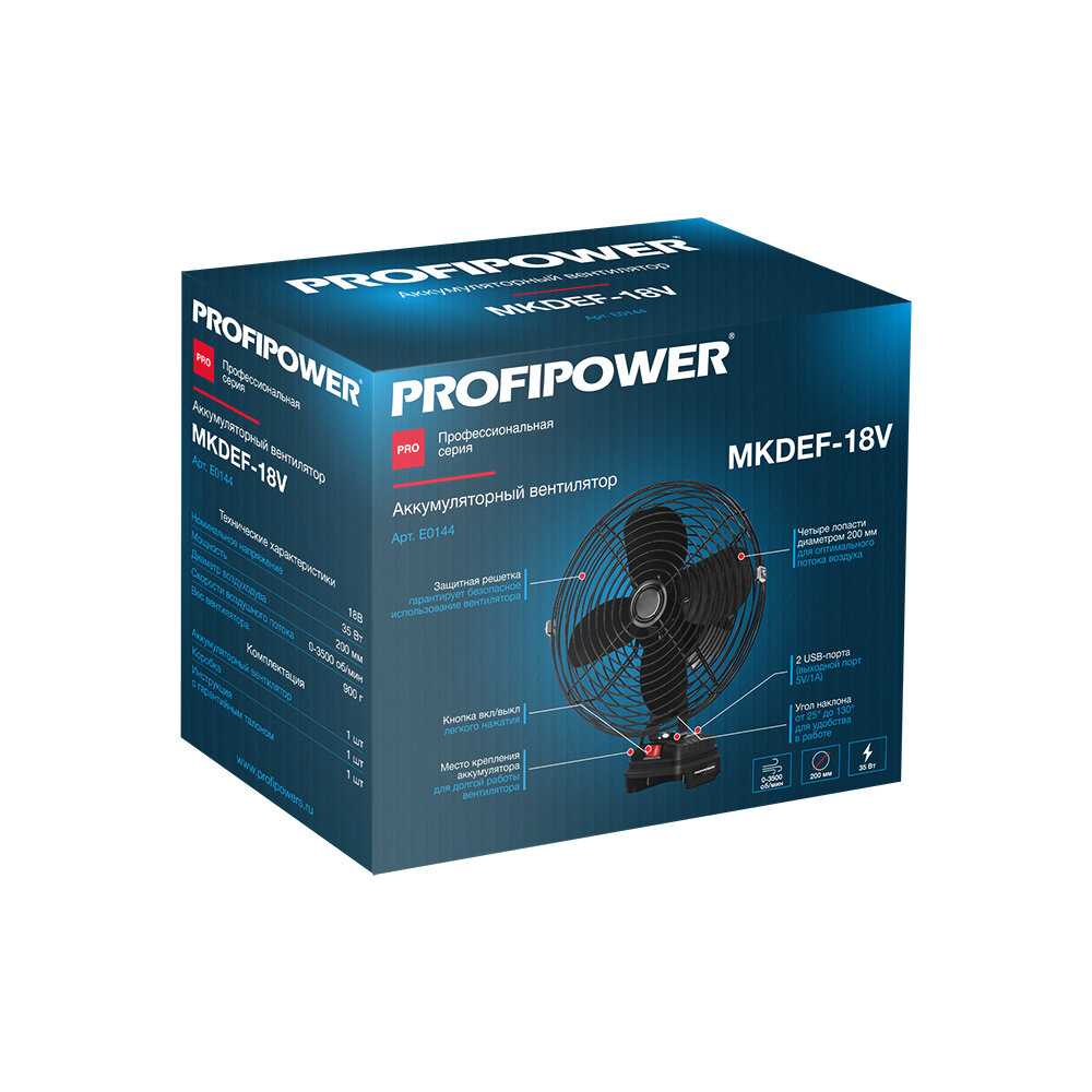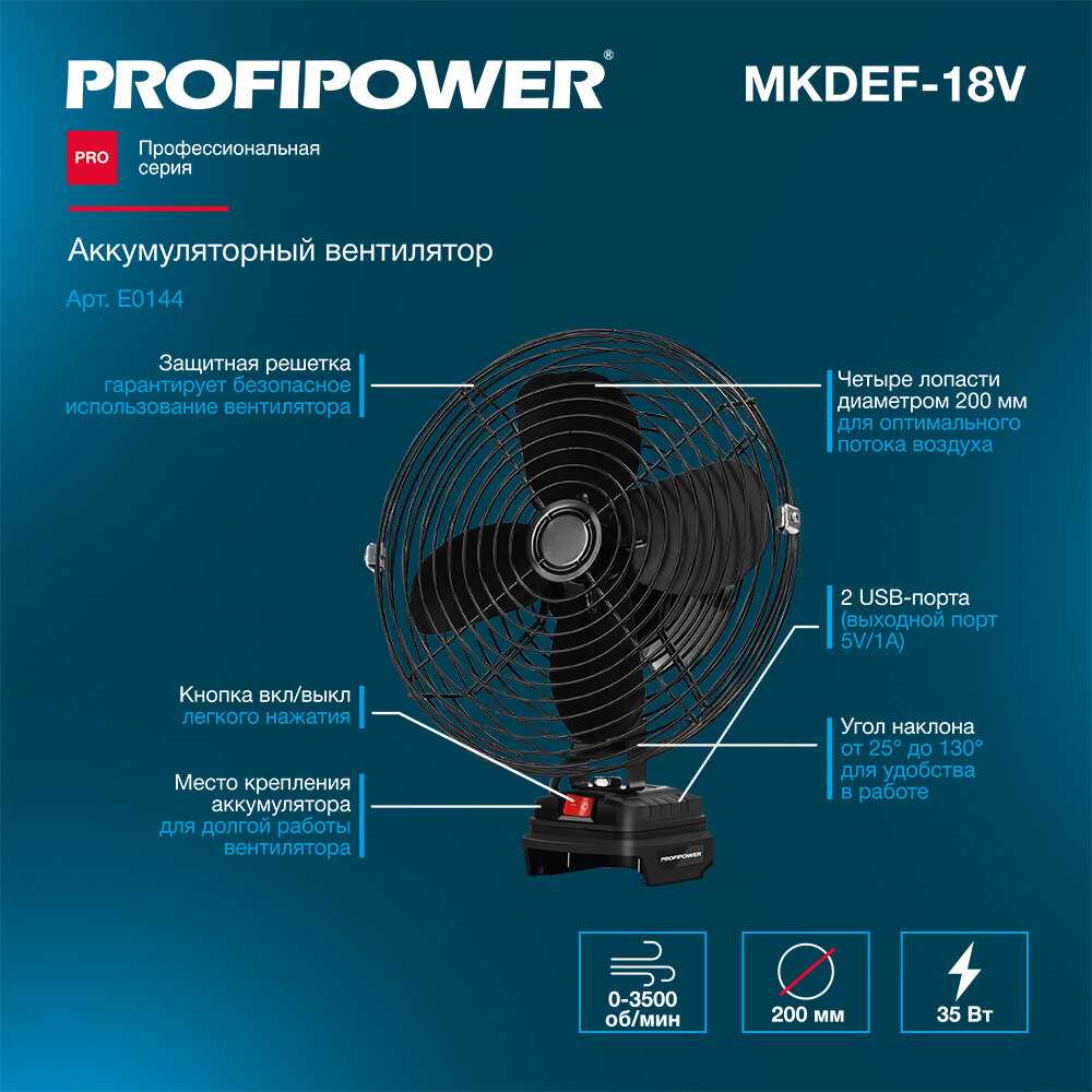 Характеристи PROFIPOWER Вентилятор аккумуляторный (MKDEF-18V)
