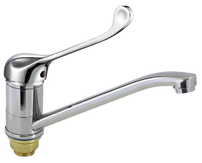 Смеситель за свою цену неплох. Стоит на кухне у нас уже второй год, нареканий к нему нет. Удобен в применении, прекрасная длинная ручка для подачи воды. Можно спокойно открыть кран даже при помощи локтя, когда руки у вас грязные. Регулируется напор и температура плавно. Внутри стоит качественный керамический картридж. Гусак тоже неплохой, поворотливый, это удобно для мытья больших кастрюль. Вода подается ровно на середину раковины, без перебоев и без брызг. Кран работает тихо, не фырчит и не гудит. Все прекрасно функционирует, отлично крутится и хорошо регулируется.
