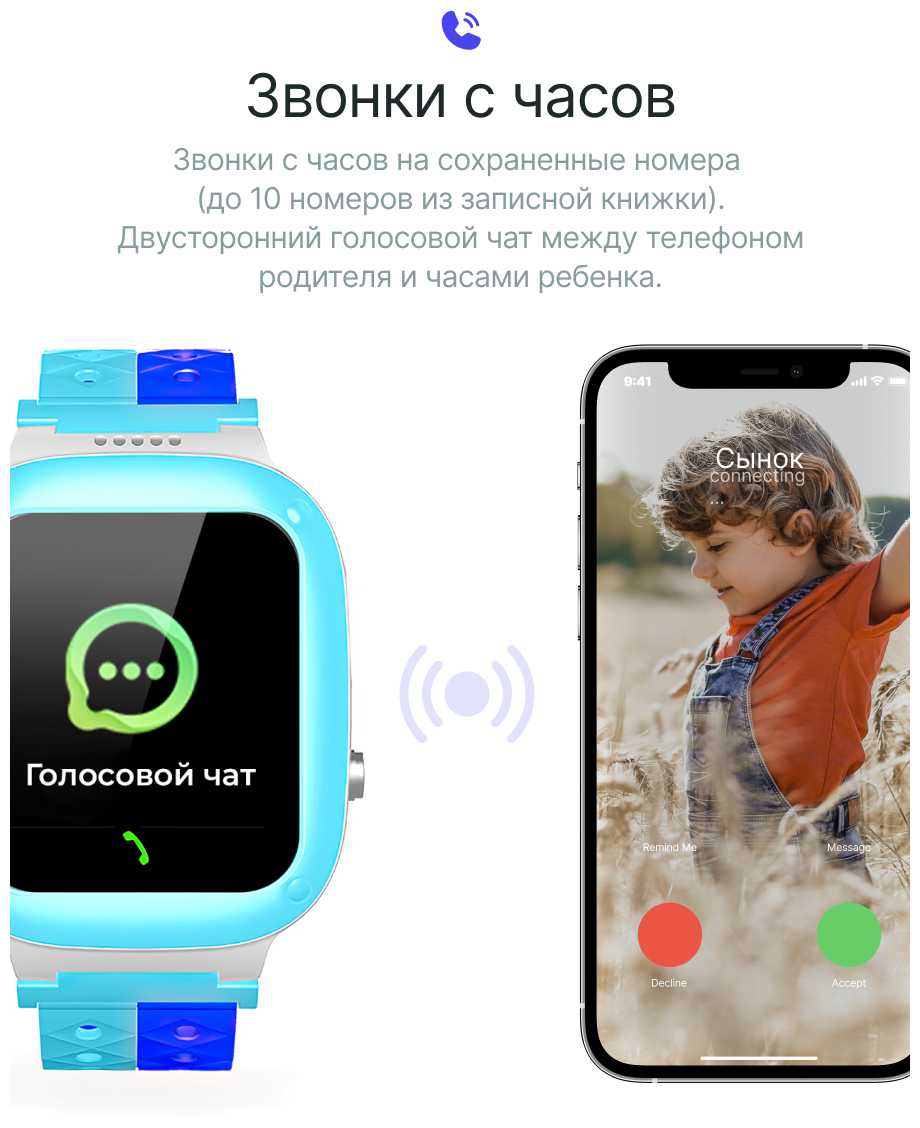 - Функция «тихого» вызова позволяет родителям активировать микрофон часов без уведомления ребенка.